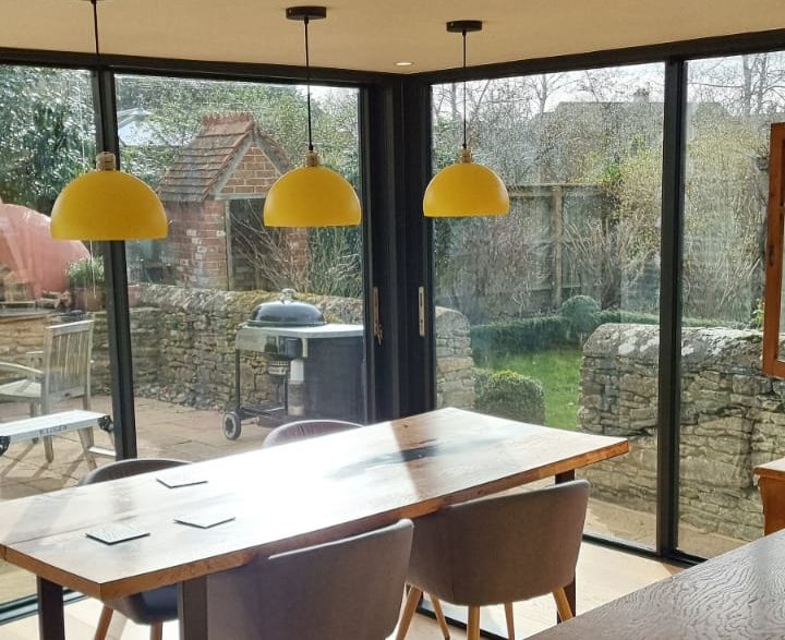 Our craftsmen recently completed an installation on this charming Grade II listed house near the village of Standlake in Oxfordshire. Offering a seamless blend of period and modern features, the property is built of traditional Cotswold stone. As part of a recent dining room extension, we installed Cortizo Vision sliding doors to help take maximum advantage of the views over the garden and terrace.